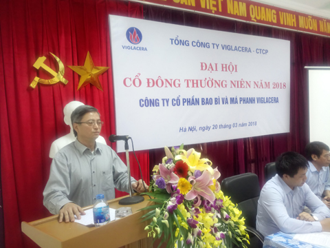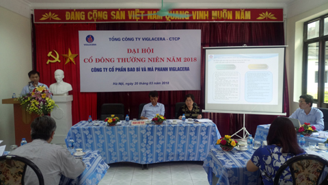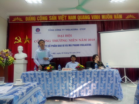 Tới dự đại hội có sự hiện diện của Ông Nguyễn Minh Tuấn - Phó Tổng giám đốc TCT Viglacera, Ông Kiều Bách - Chủ tịch HĐQT Công ty, Ông Đặng Minh Tâm – UV. HĐQT kiêm Giám đốc Công ty, các Ủy viên Hội đồng quản trị và Ban kiểm soát cùng các Cổ đông của Công ty. Đại hội đã nghe Ông Đặng Minh Tâm - Giám đốc Công ty CP Bao bì và Má phanh Viglacera trình bày kết quả hoạt động sản xuất kinh doanh năm 2017 và kế hoạch kinh doanh năm 2018; báo cáo của Ban kiểm soát năm 2017, báo cáo của Hội đồng quản trị năm 2017 và các giải pháp chỉ đạo thực hiện KHKD năm 2018.