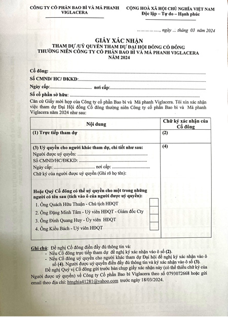 Mẫu đăng ký tham dự/Ủy quyền tham dự Đại hội:
