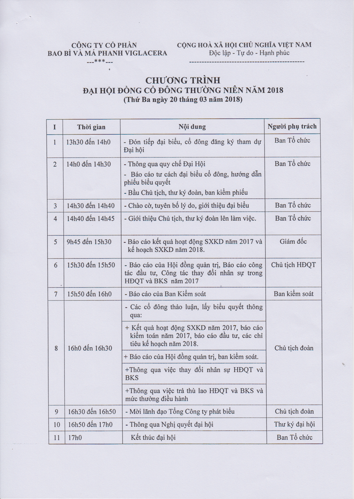 Chương trình Đại hội đồng cổ đông thương niên năm 2018 cụ thể như sau :